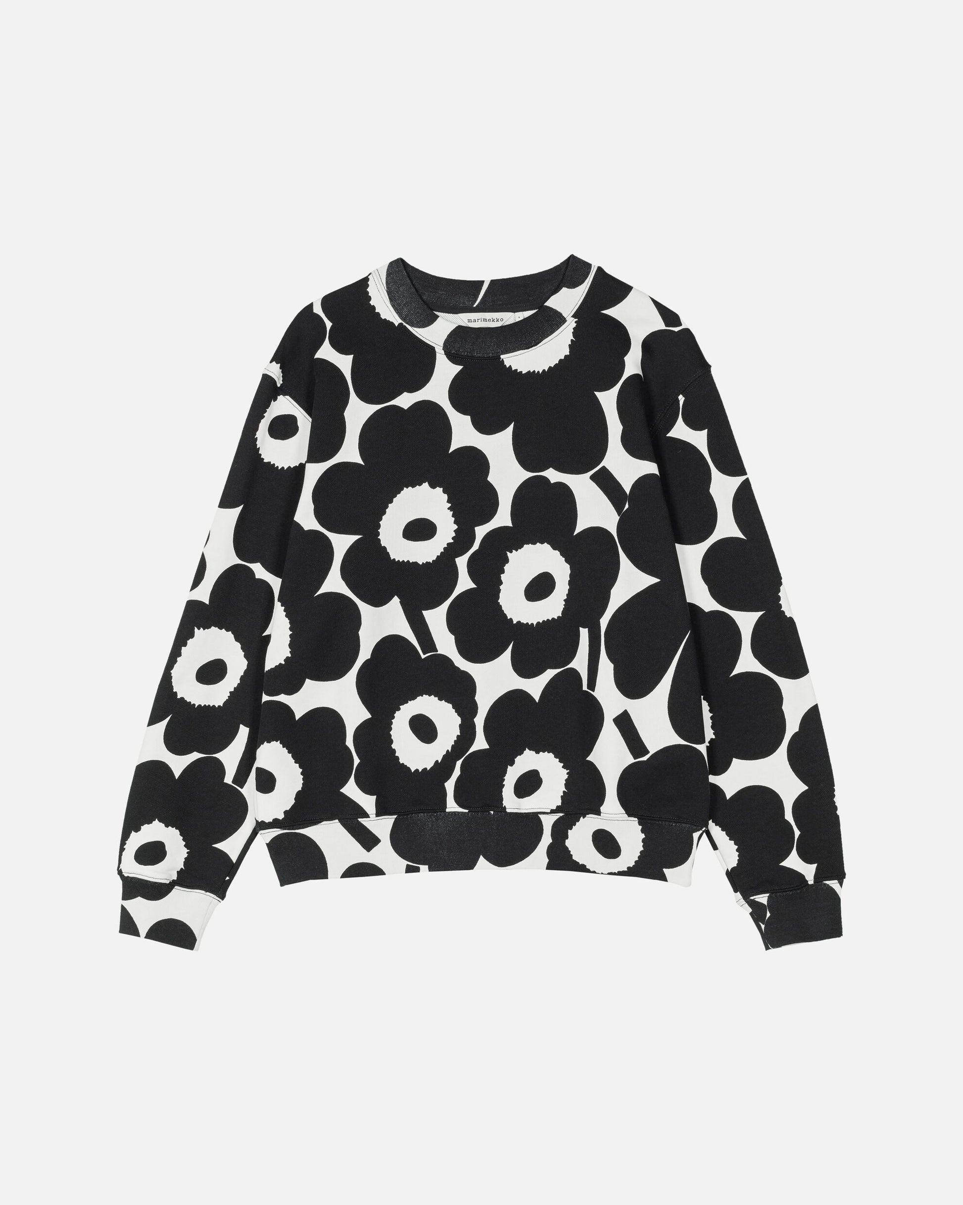 Realizzata in French terry di cotone biologico, la felpa Leiot ha una vestibilità comoda e presenta il motivo Pieni Unikko.